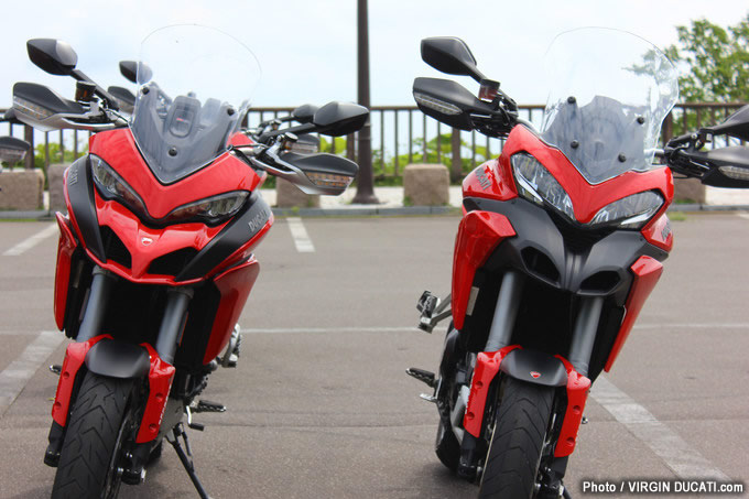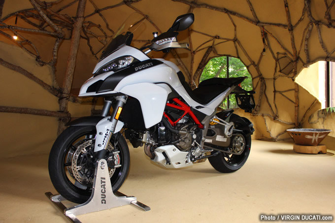 スタイリングを見るとマイナーチェンジのように思えますが、その中身はまったくの別物。2010年に提唱された4台のモーターサイクルを1台にまとめ上げる“4 bikes in 1”のコンセプトは継承され、2012年に電子制御セミアクティブサスペンションのDSS(ドゥカティ・スカイフック・サスペンション)を導入、2015年モデルでは新開発のテスタストレッタDVT(デスモドロミック・バリアブル・タイミング)エンジンと最新のボッシュ製IMU(慣性測定ユニット)を搭載。この慣性測定ユニットにより、DSSは「エボリューション」へと進化しています。ほかにも複数の追加機能が搭載され、先代を時代遅れにするほどのマルチバイクとなっています。