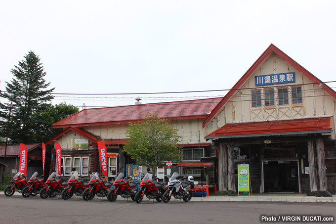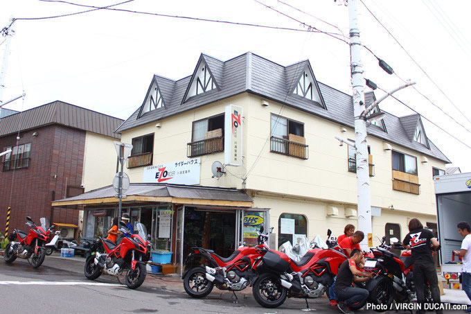 182日間のテストライドを終えて帰路につく頃、今回のメディアローンチに協力してくれた、川湯温泉でレンタルバイクとライダーハウスを営む『EZOライダー川湯営業所』では、散々走った新型ムルティの洗車とトラックへの積み込み作業に追われていました。こうした町ぐるみの協力もあり、今回は新型ムルティを体感するうえで最適な2日間となりました。