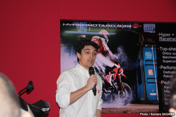 04プロジェクト・マネージャーのドメニコ・レオ氏によるプレゼンテーション。排気量937ccに対してネーミングを『939』としたのは数字の並びが美しいからだとか。さすが芸術の国。