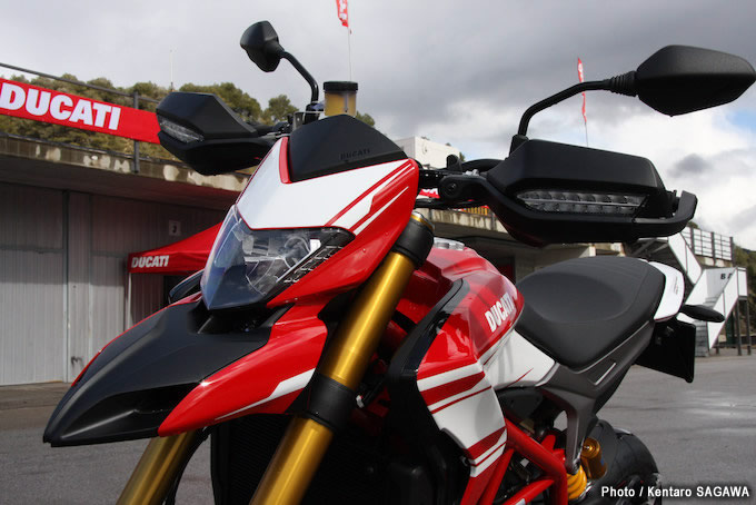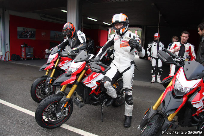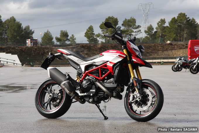 ウエットからセミウエットという難しい路面コンディションでの試乗だったが、それがかえって『ハイパーモタード939SP』のドライバビリティの良さを際立たせた。