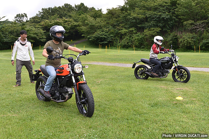 05RAMBLE TRACKと名付けられた「くねくねコース試乗」。参加者自身のスクランブラーでの試乗だが、Sixty2のレンタルもあり。