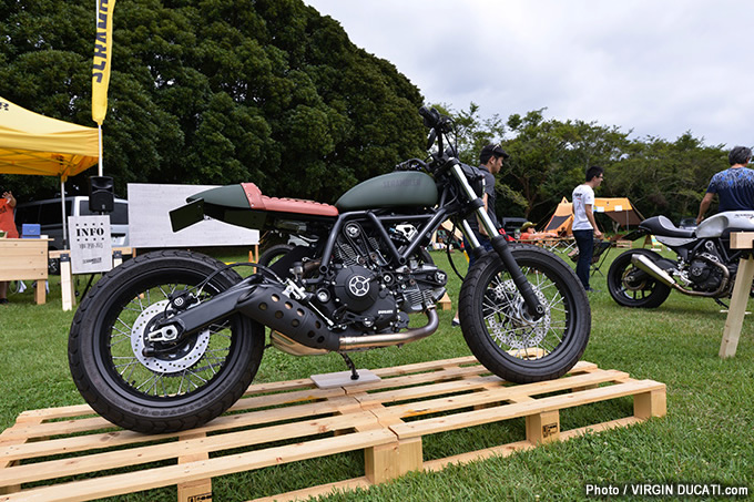 07イベントメインテントの前には、スクランブラーをベースにしたさまざまなカスタムが展示された。