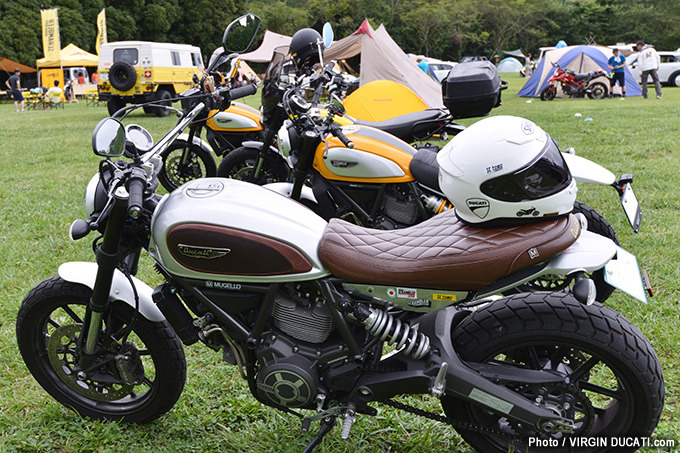 12会場に止められていた参加者のスクランブラー。やはりスクランブラーでの来場が圧倒的に多かった。