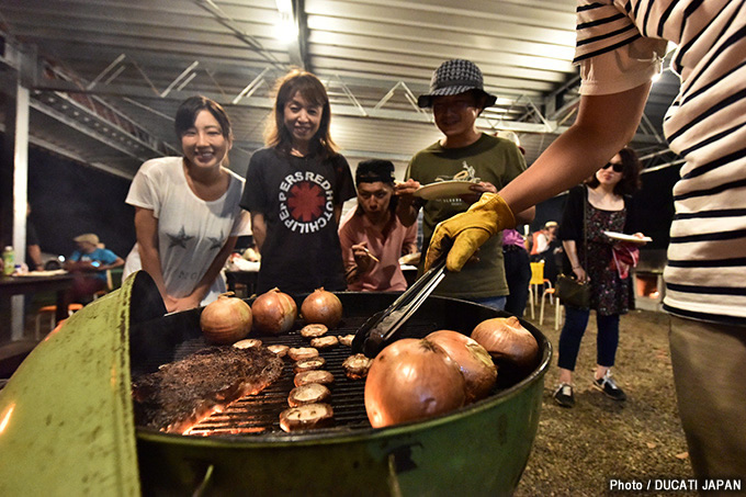 20夜にはお待ちかねのBBQパーティーが! 日本BBQ協会公認のインストラクターによるBBQ講座も行われた。