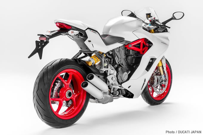 今年7月のドゥカティスタの祭典、WDW 2016で行われた内見会に続き発表されたSuperSportは、毎日のあらゆるライディング・シーンで使える、楽しく快適なスポーツバイクとなっている。優れたロード・パフォーマンスに加え、ツーリングにもデイリーユースにも対応可能で、エキスパート・ライダーも満足できるスポーツ性能を備えている。その一方で、非常に多目的なキャラクター、扱い易いハンドリング、ドゥカティならではのスポーツ・ライディングを実現し、ドゥカティ・スポーツバイクの世界に初めて足を踏み入れるビギナーにも最適なモーターサイクルに仕上げられている。