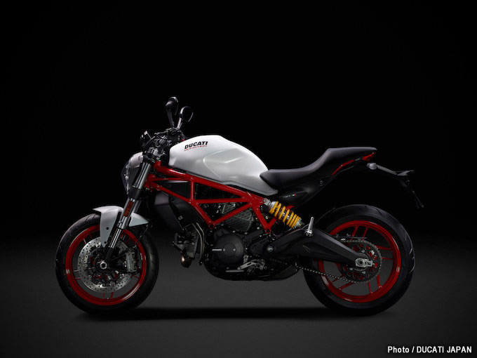 スポーティでコンパクト、シンプルでありながら非常にスタイリッシュなモンスター797は、まぎれもないモンスターのオーラを備え、ドゥカティ・ワールドのエントリー・モデルとしての役割を果たす。モンスター797は、アイコン・モデルとして君臨した90年代のバイクを想起させながらも、燃料タンク、トレリス・フレーム、空冷Lツイン・エンジン、ラウンド・ヘッドライトなどには最先端のテクノロジーを採用している。