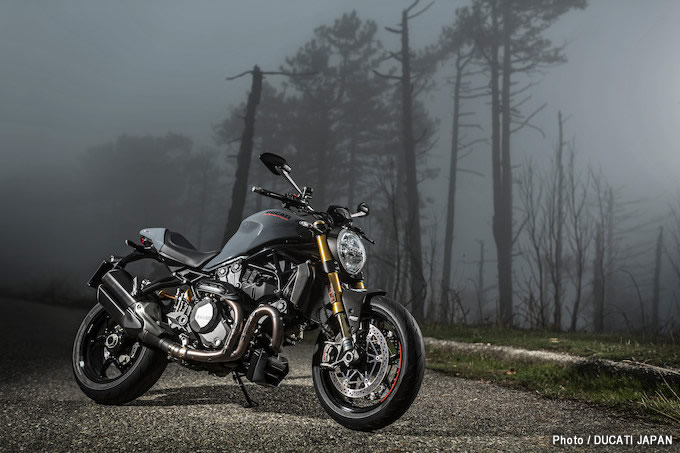 24年間にわたって、モーターサイクルを超えたアイコン的存在として君臨するモンスターは、ネイキッド・バイクというセグメントを定義しただけでなく、「メイド・イン・ドゥカティ」というモーターサイクルの哲学も表現している。2017年モデルのモンスター・ファミリーには、新しくなった1200に加えて、ブランニュー・モデルとなる797が加わった。モンスター1200は、新しいデザインや装備を搭載しながらも、モンスターの本質を追求しています。そのシェイプ、シルエット、燃料タンク、そしてヘッドライトは、1993年に登場した初代モデルのラインを忠実に再現。ハイパフォーマンスなSバージョンも設定されるモンスター1200は、流麗な曲線を描くタンク、完全にデザインが見直されたスポーティなテール、最先端のテクノロジーを採用したヘッドライト、1299パニガーレから流用された一級のエレクトロニクス・パッケージを特徴としている。