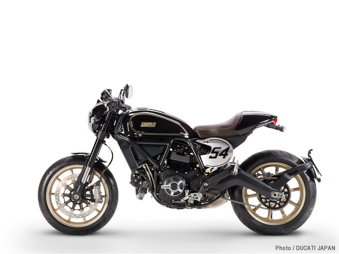 最初モデル、ドゥカティスクランブラー・カフェレーサーは、モーターサイクルの世界に革命をもたらした1960年代の伝説的バイクを、スクランブラー流に解釈し直したモデルである。自由な精神、そして「ブラック・コーヒー」を表現したカラー。ドゥカティスクランブラー・カフェレーサーは、私たちを1960年代から現代の「ランド・オブ・ジョイ」へと誘う。17インチ・ホイールや「レーサー」ハンドルバーに加え、リア・エンドのデザインが完全に見直され、純粋なカフェレーサー・スタイルが創出されている。