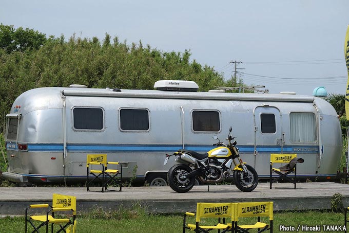 エアストリームとマッシブなスクランブラー……日本でこんなアメリカ西海岸風な景色が見られようとは。