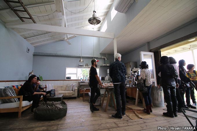 開場の11時前から続々と集まるオーディエンス。スクランブラーオーナーだけでなく、他メーカーバイクのライダーも多く集まった。