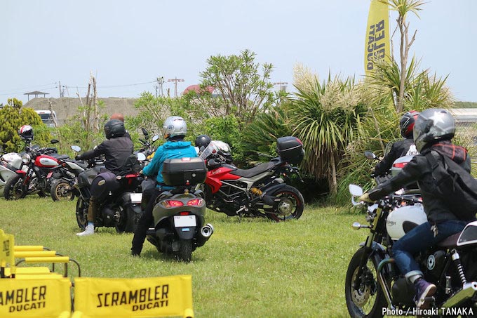 こう見ると、まるでオフロードバイクの試乗会シーンのよう。これもスクランブラーならでは!