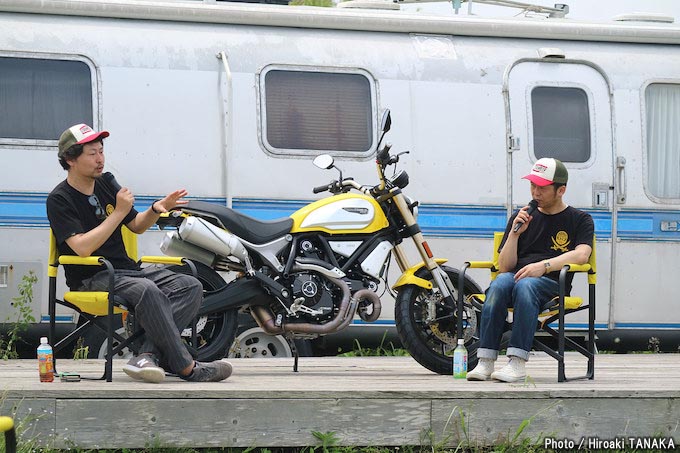 2018年3月、ポルトガル・リスボンで開催されたスクランブラー1100のメディア向け海外試乗会に参加した「オートバイ」誌編集長の松下尚司さんとフリーライターの河野正士さんによるトークショーも開催。リアルなスクランブラー1100の試乗インプレッションを聞くことができた。