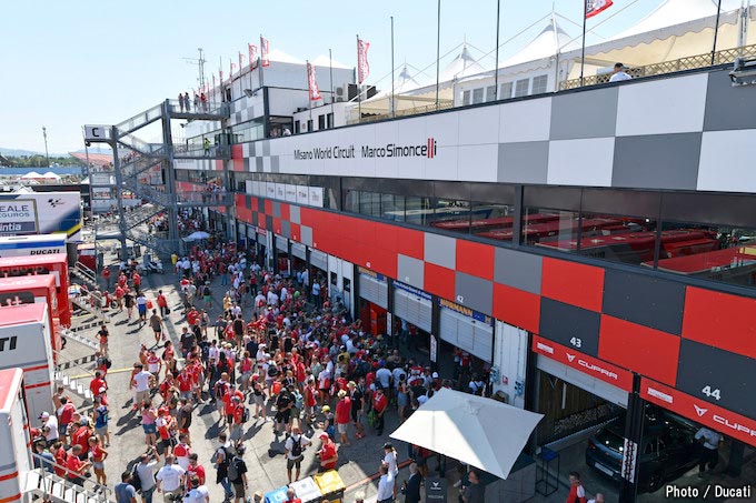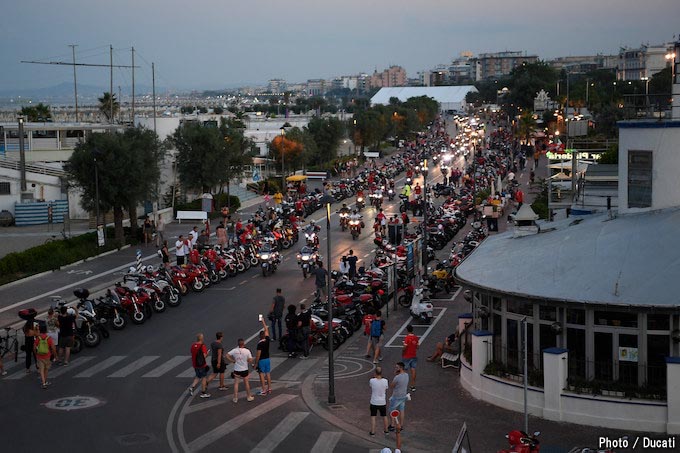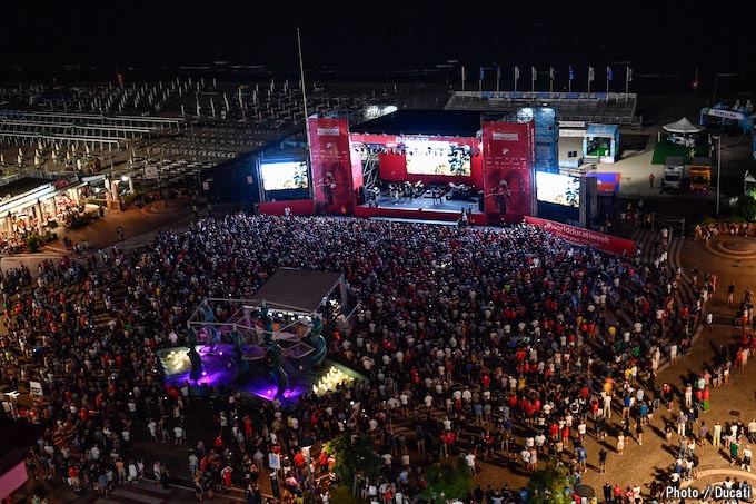 そしてここには、世界中のドゥカティ・ファンが集結。ドゥカティ本社があるボローニャや、メイン会場となるミザノはもちろん、その途中にあるリミニやリッチョーネといった街も巻き込んだ巨大なお祭りといった雰囲気。それもそのハズ。会場には73カ国から9万1596人が来場。前回開催から1万人以上も来場者を増やした、過去最大級のイベントとなった。ここでは開催されたさまざまなコンテンツとともに、会場の雰囲気を紹介する。