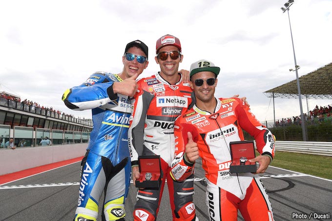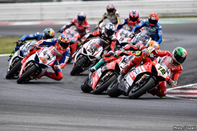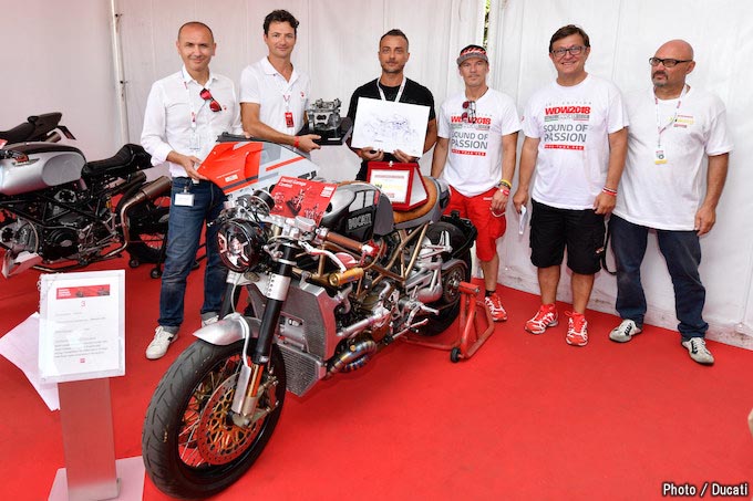 普段は別カテゴリーで戦うドゥカティのワークスライダーたちが、「パニガーレV4S」に跨がり真剣勝負をするのが「レース・オブ・チャンピオンズ」。マシンは各カテゴリーで戦うチームカラーにスペシャルペイントが施され、またサーキット走行のための特別なパーツがセットアップされていた。レース前はスタンダードのままで走るという紳士協定が組まれていたようだが、ライダー&チームともにエスカレートし、サスセッティングや車高調整まで施されたという。レースは6周目に降雨赤旗。5周目のリザルトが正式結果となった。その結果、1位/ミケーレ・ピッロ、2位/エステベ・ラバト、3位/ハビエル・フォレス。レース後、各ライダーが乗った12台の「パニガーレV4S」はeBayでオークションに掛けられ、落札者に販売された。