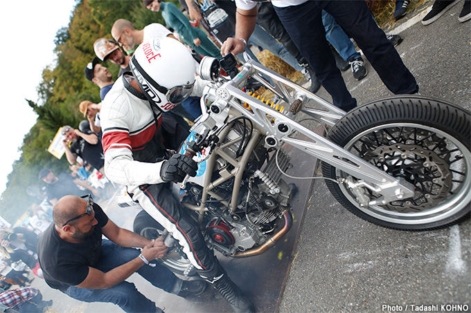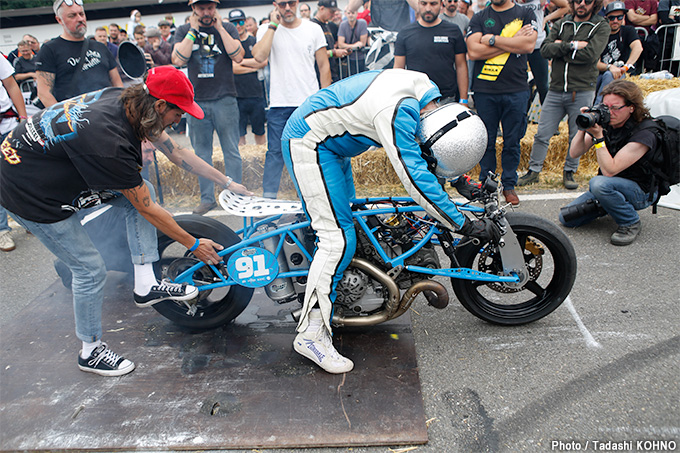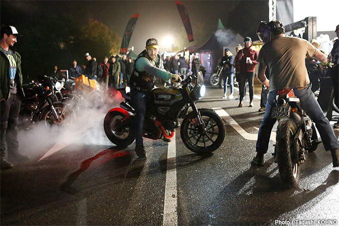メインコンテンツは1/8マイル・スプリントレース。日本で言うところの0-200mドラッグレースだ。しかしその雰囲気は“ドラッグレース”とは異なる。排気量や年代、チューニングの度合いによって複数のクラスが用意されているが、そこで戦う車両はレギュレーションによってカスタムバイク然としている。また国産車や欧州車を中心とした最新モデルが数多く参加していることも、特徴だ。しかもその最新モデルは、スーパースポーツではなく、人気のネオクラシックが多い。