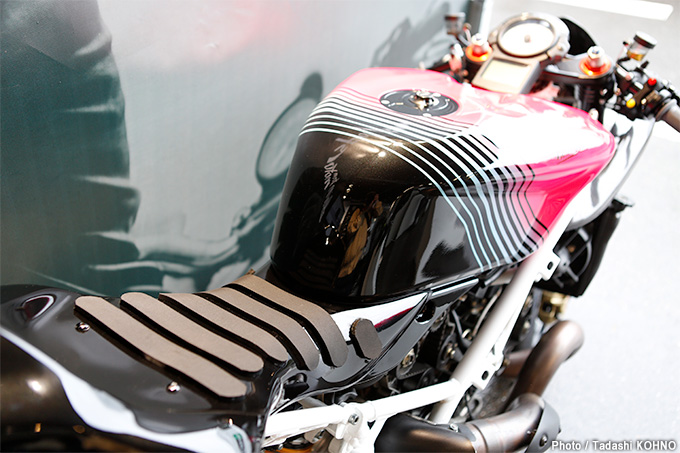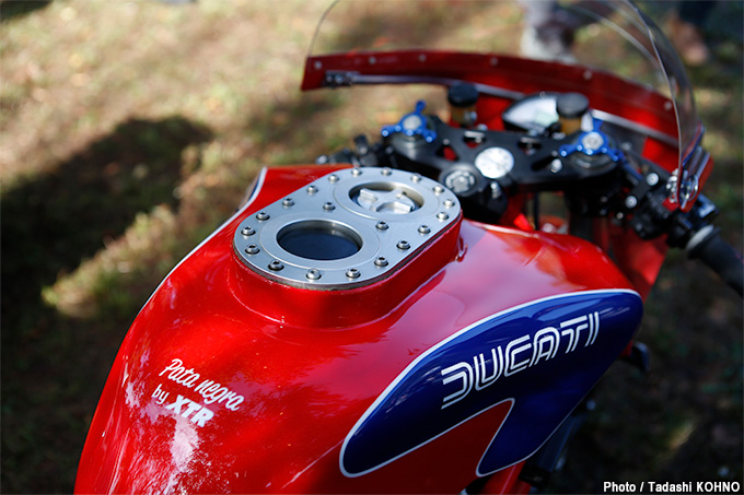 こちらもXTR Pepoの作品。2001年型モンスター750がベースだ。749R用タンクをアレンジしながら、ヤマハTZ250用カウルをフィッティングする。