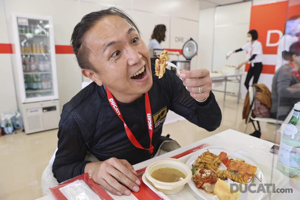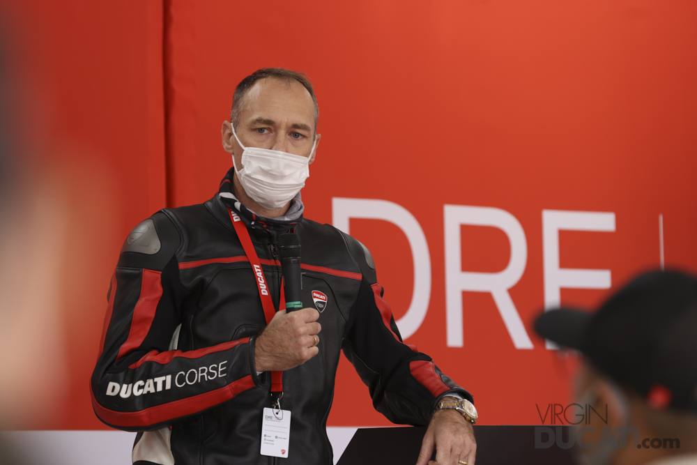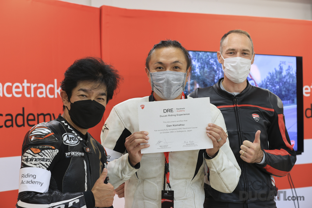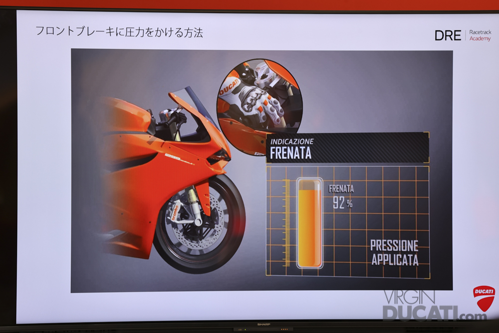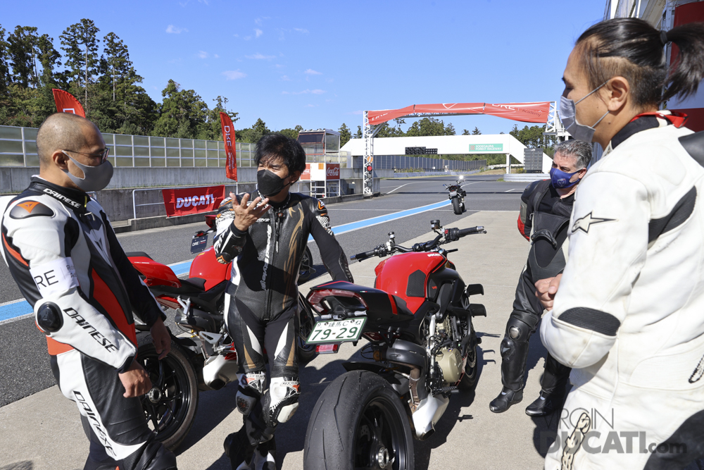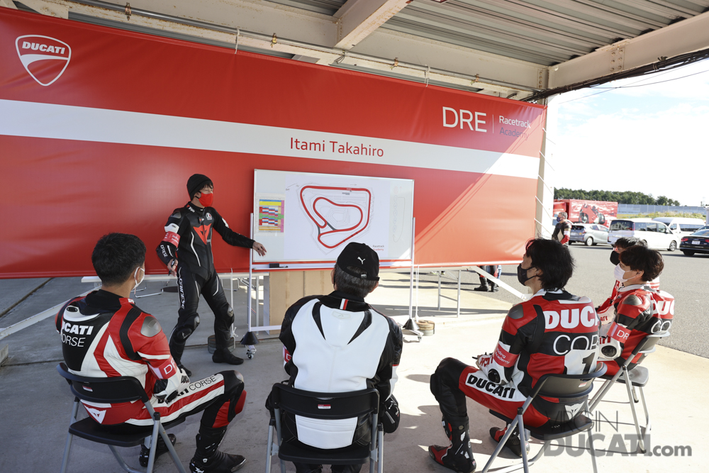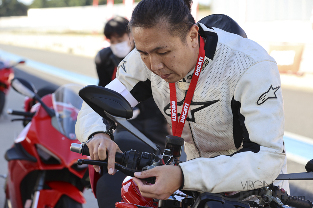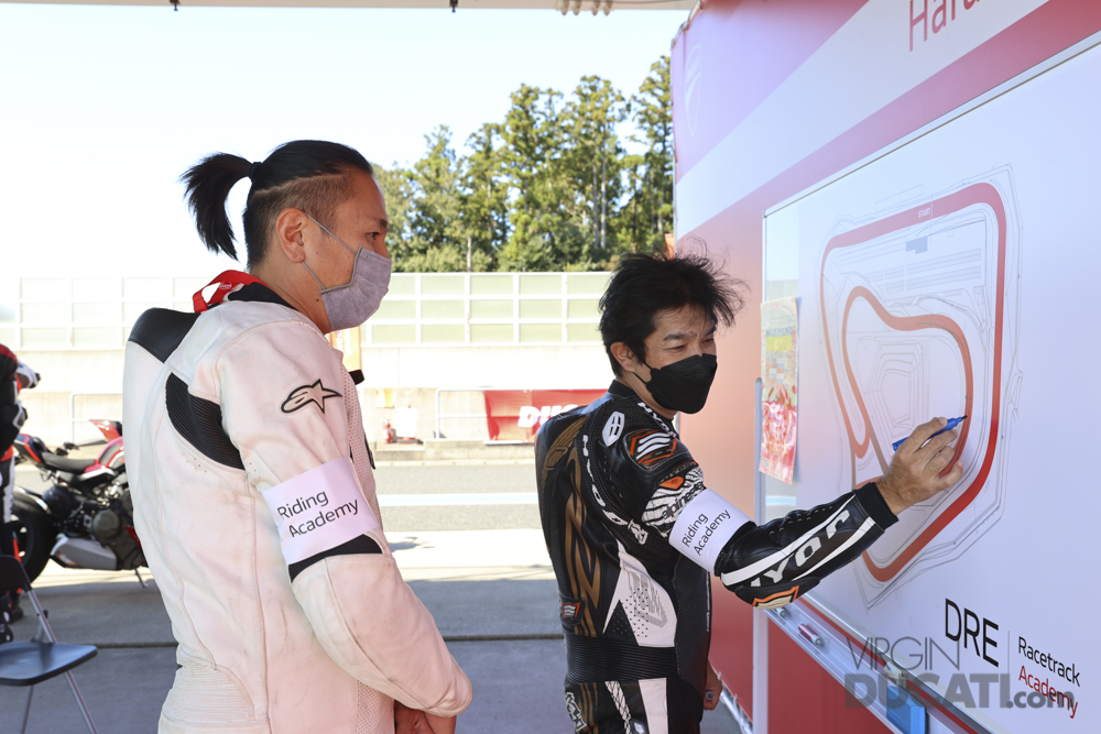 説明によると本国のDREにはレベル1となるウォームアップ、レベル2のエボ、レベル3のインディビジュアル、レベル4のワン・オン・ワンが設定されており、自分に合った(求める)回に参加することができる。今回は日本初開催ということで、ウォームアップとされたが、ゆくゆくは他のレベルも開かれることは十分に考えられる。なおイタリアでは、ドゥカティで複数回WSBK世界チャンピオンとなったトロイ・ベイリスにマンツーマンレッスンをしてもらえるDREも存在するそうだ。参加費は約35万円ほどだそうだが、是非とも経験してみたいものである。