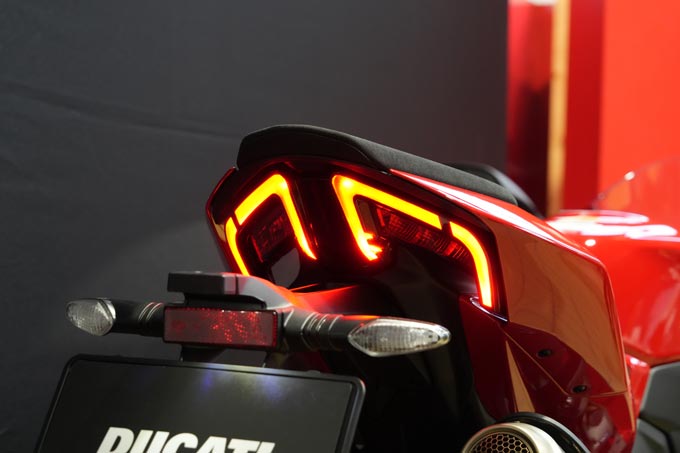 ヘッドライトやテールランプは、一目見ただけで”パニガーレ”だと伝わってくる特徴的なものとなっている。見るものに感動を与える美しいデザインもドゥカティらしさの大きなポイントとなっている。