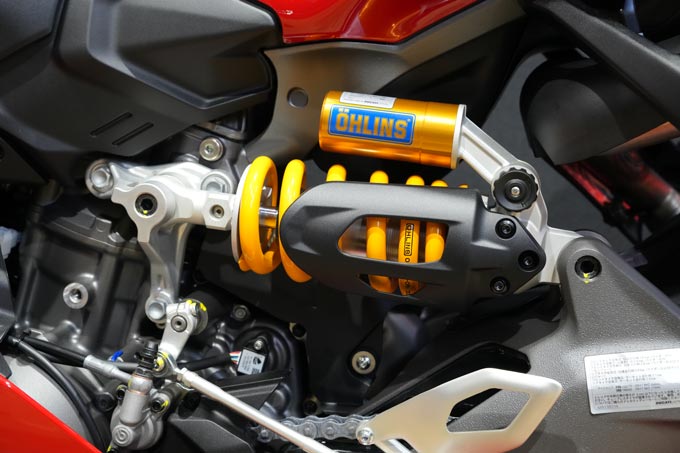 ”S”バージョンには前後オーリンズ製のサスペンションがセットされる。カンチレバー方式となったことによる、リアサスペンションの感触が気になるところだ。
