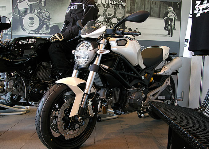 昨年発売されたばかりのモンスター696+。国内メーカーには真似が出来ない尖ったスタイルはライダー以外にも訴えかける美しさです。