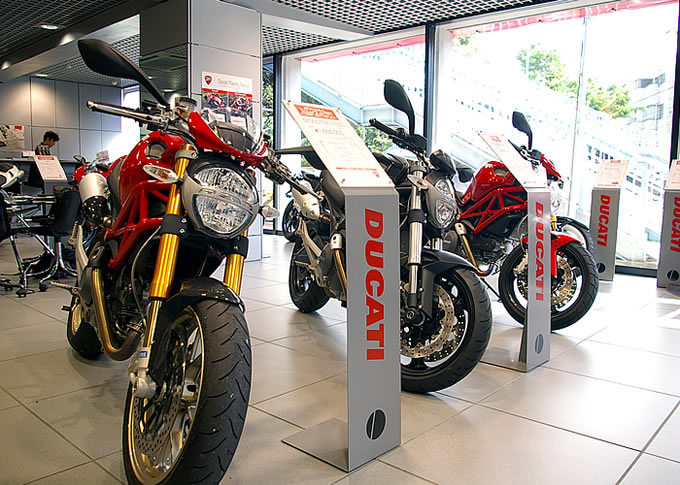 「試乗車については、各ディーラーともそれぞれのカテゴリを代表するモデルを用意するようにしています。全バリエーション、とまではいかなくとも1台だけということはまずありません。例えば、ドゥカティ練馬ではスーパーバイク1198S、モンスター1100S、モンスター696、ハイパーモタードを用意しておりますし、事前にご連絡いただければ、最近人気が高まっているスーパーバイク848も試乗できます。お客様の中には、『ドカは速くてすごいから自分には…』とおっしゃる方もいらっしゃいますが、乗ってみると印象が大きく変わると思いますよ。実は、結構意外なモデルが乗りやすかったりするんです。気になったら、是非気軽に体験してみて欲しいですね」